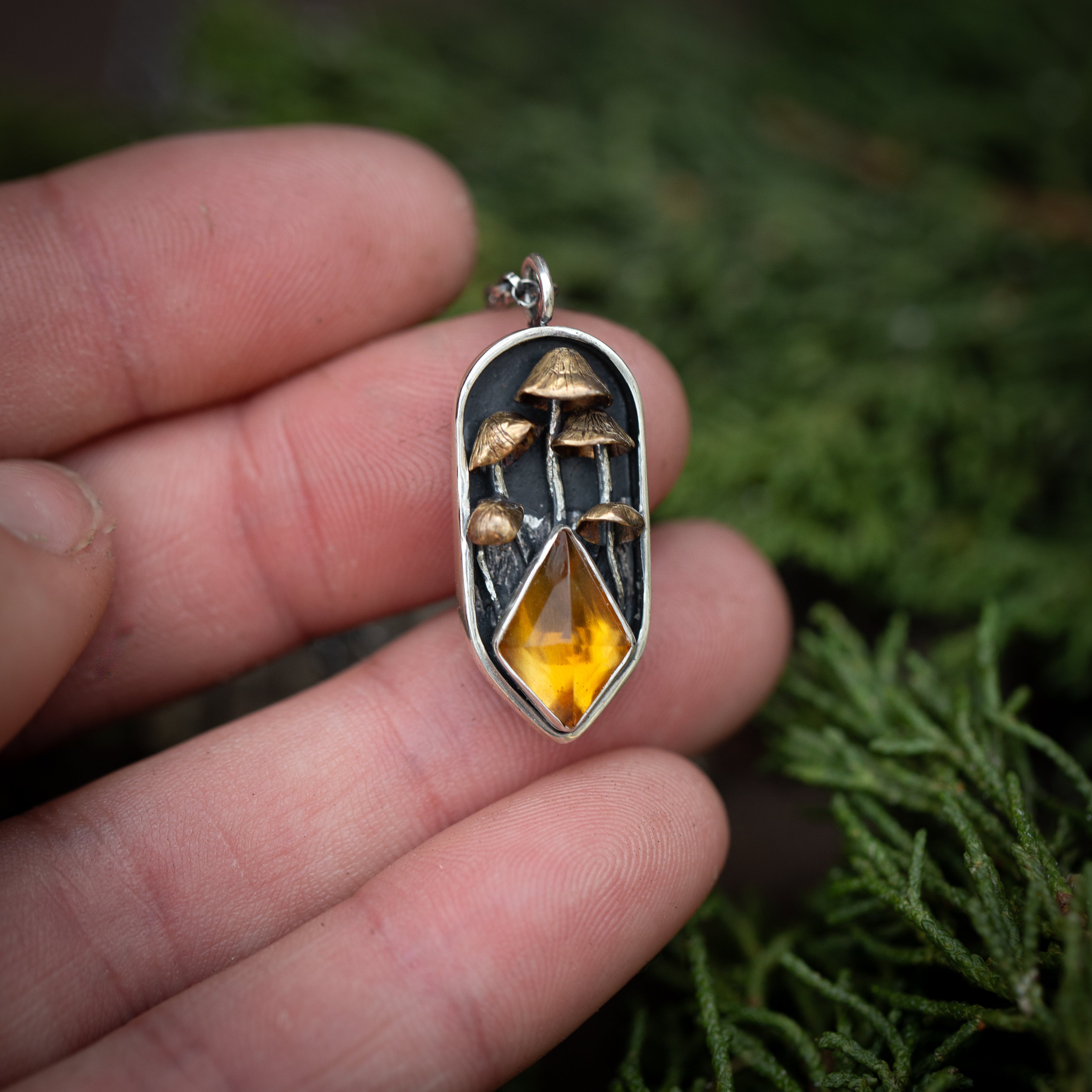 Porcini's Bounty Sterling Silver and Brass Mushroom Necklace